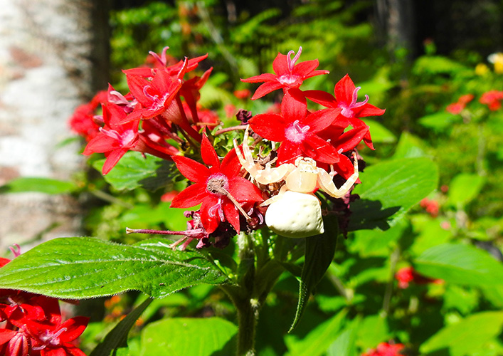 When a bee, butterfly or fly settles on the flower, the spider strikes.