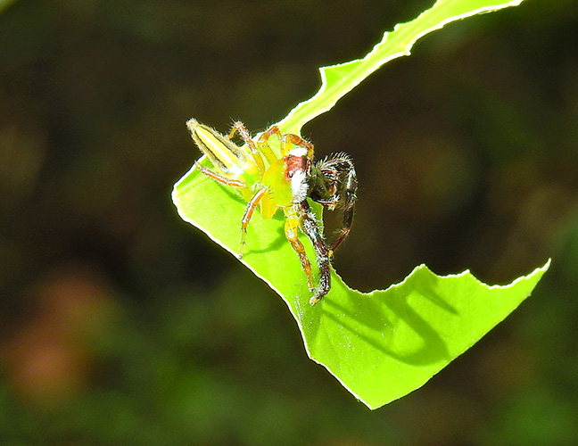 | Bronze Jumping Spiders | Helpis spp. | Metallic sheen, often found on foliage |