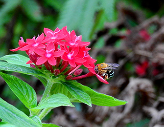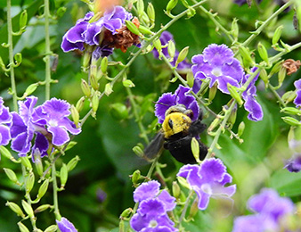 Native bees are vital pollinators. As they move from flower to flower collecting nectar and pollen, they transfer pollen between plants, allowing seeds and fruit to develop.