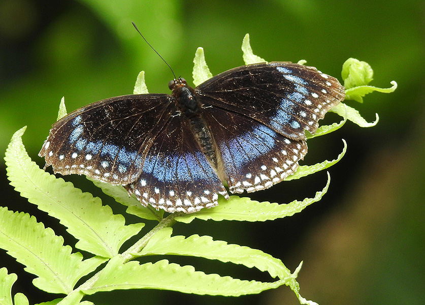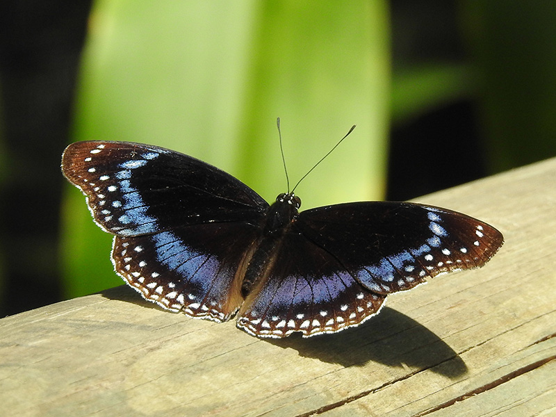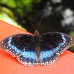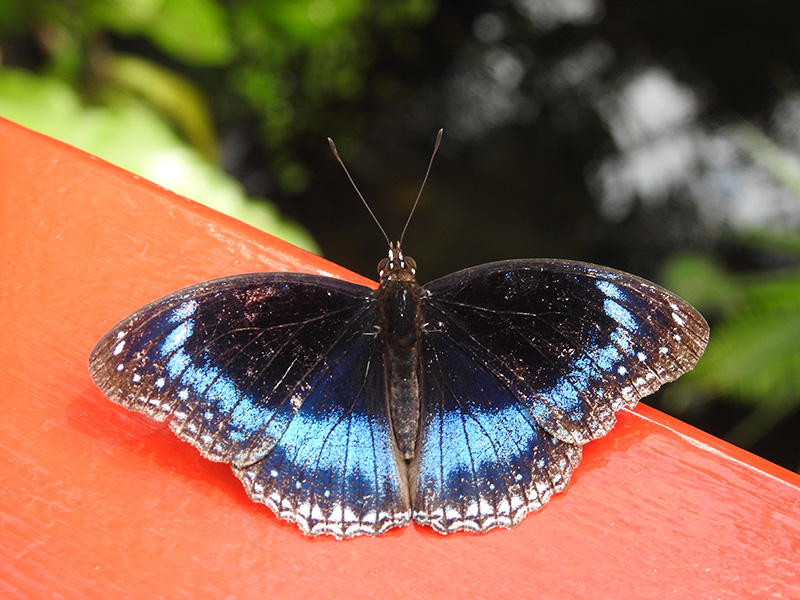 Another interesting feature of the species is that the male’s blue band can appear different shades of blue depending on lighting conditions. The colour may shift from deep cobalt to a brighter electric blue as sunlight reflects off the microscopic scales on the wings.