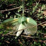 When disturbed, it performs one of Australia’s most striking insect defence displays. It may raise and flap its wings to expose the bright blue patches, strike its hind legs together, and vibrate surrounding leaves. This sudden movement and colour display is designed to startle predators, such as birds or reptiles, giving the insect time to escape..
