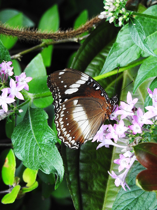 Adult Common Eggflies feed on nectar and plant juices. They frequently visit flowering plants but also obtain nutrients from other sources.