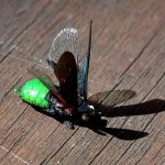 Like many sap-suckers, the Green and Black Planthopper feeds on plant juices. They excrete the excess sugar as a sweet, sticky liquid called honeydew. Ants love this sugary treat and will often protect the planthoppers from predators in exchange for a drink.
