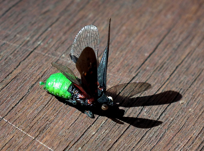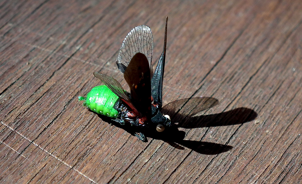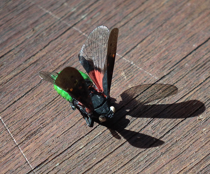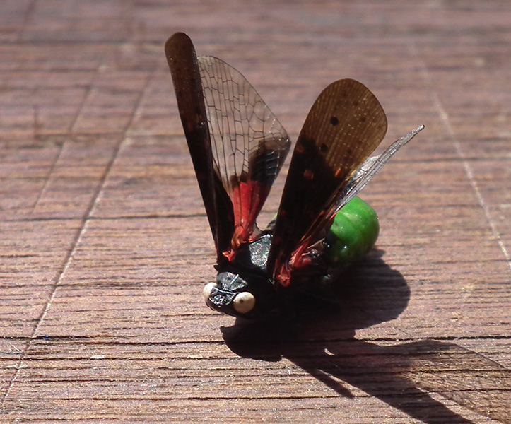 This is one of Australia’s most beautiful sap-sucking insects. Belonging to the family Fulgoridae, it is a true bug that combines camouflage with a spectacular flash of warning colour.