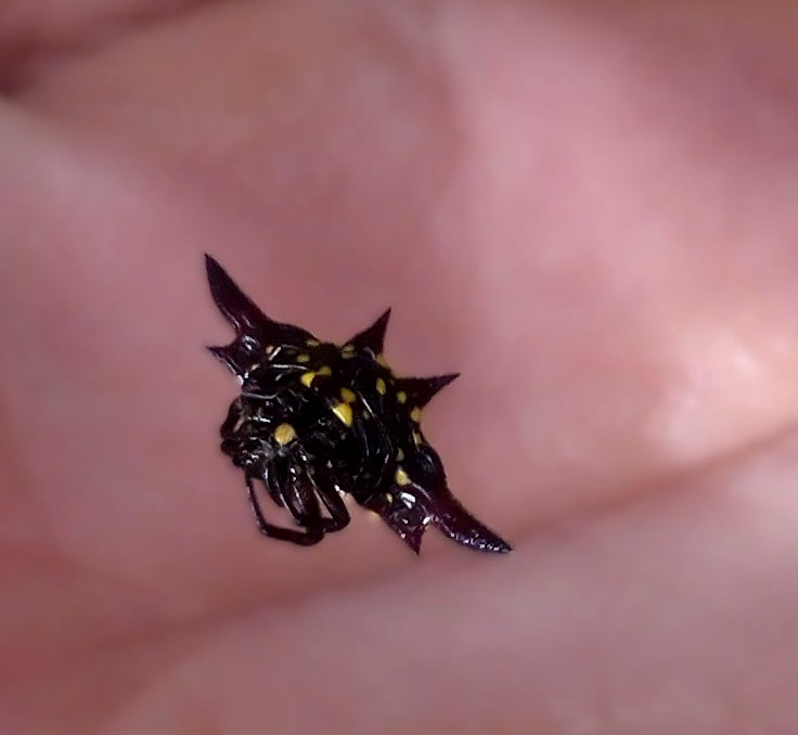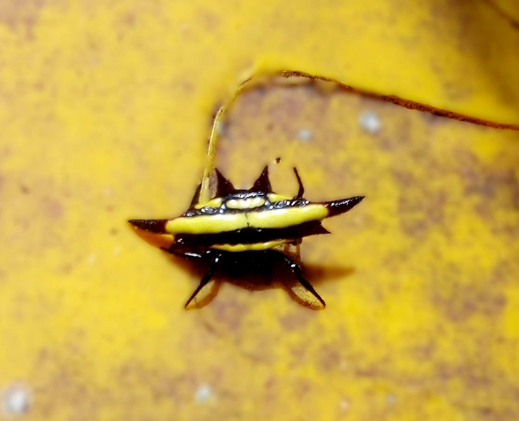 The hardened, spiked abdomen acts as protection, making the spider difficult for birds and lizards to swallow.