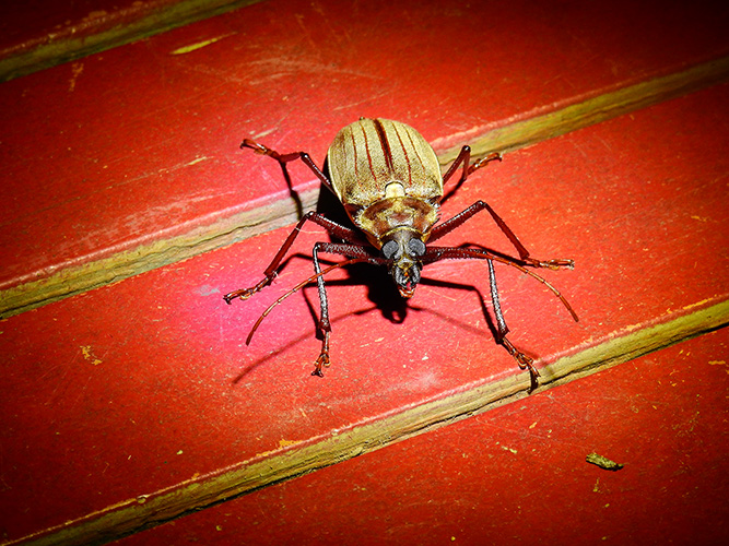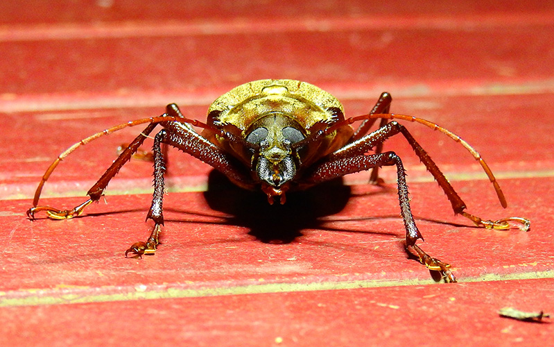 If you’re out and about on a warm summer night near the rainforests or open forests of eastern Australia, you might just encounter one of our most impressive insects. With antennae longer than its own body and a formidable-looking suit of armour, the Poinciana Longicorn Beetle (Agrianome spinicollis) is a true giant of the beetle world.