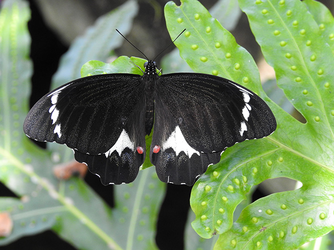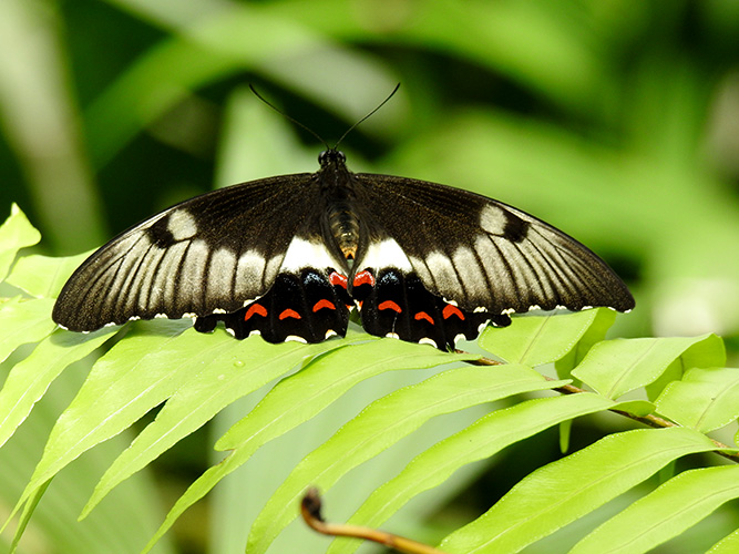 To spot an Orchard Swallowtail is to see a butterfly of impressive proportions—they boast a massive wingspan of up to 120 millimetres! Interestingly, they display extreme sexual dimorphism, meaning the males and females look so different that you might think they are two entirely separate species.