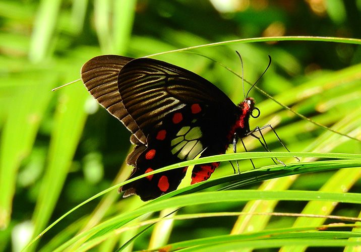The life cycle of the Red‑bodied Swallowtail depends heavily on specific rainforest vines.