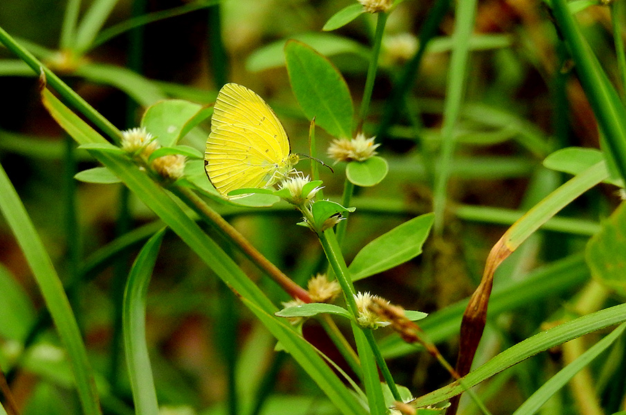 Adult Small Grass‑Yellow butterflies feed mainly on flower nectar.