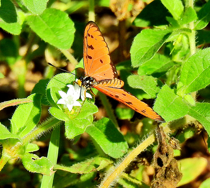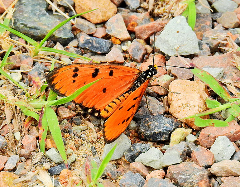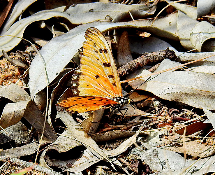 The Tawny Coster (Acraea terpsicore) is a striking orange butterfly that has recently become an increasingly familiar sight in parts of northern Australia. With its bright tawny‑orange wings marked by bold black spots, this butterfly is easily recognised as it flutters slowly through open country and gardens.